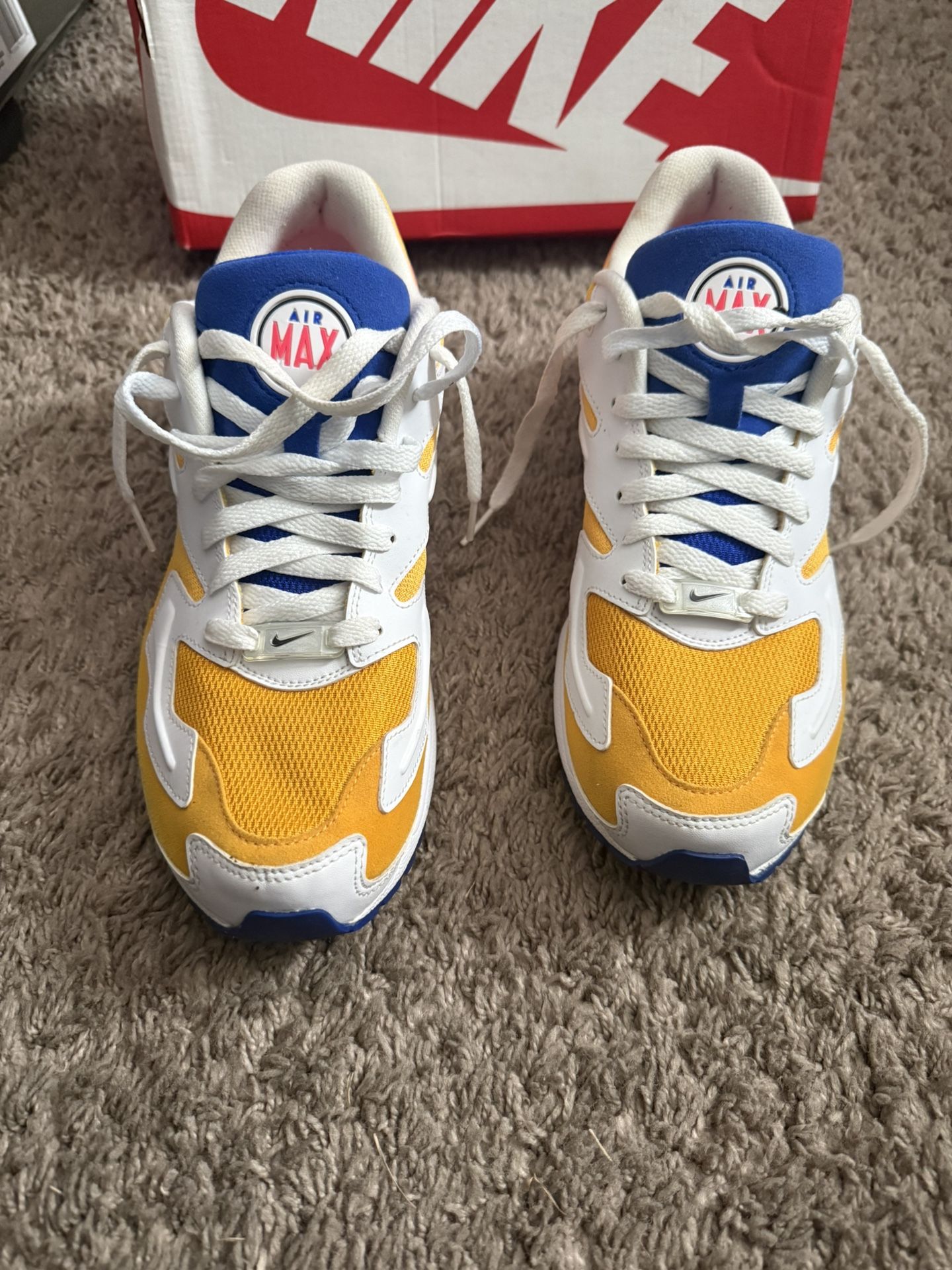 Nike Air Max 86 trainers in white and yellow #AirMax86 white, yellow accents, retro sneakers, chunky sole, athletic style, running shoes, casual trainers, sporty footwear, colorful sneakers, vintage look