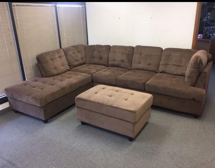 This sectional comes with beautiful and large storage ottoman Brand new in the sealed packaging Can deliver to all areas Payment upon the delivery Cash on delivery is great This is display picture Hablamos Español