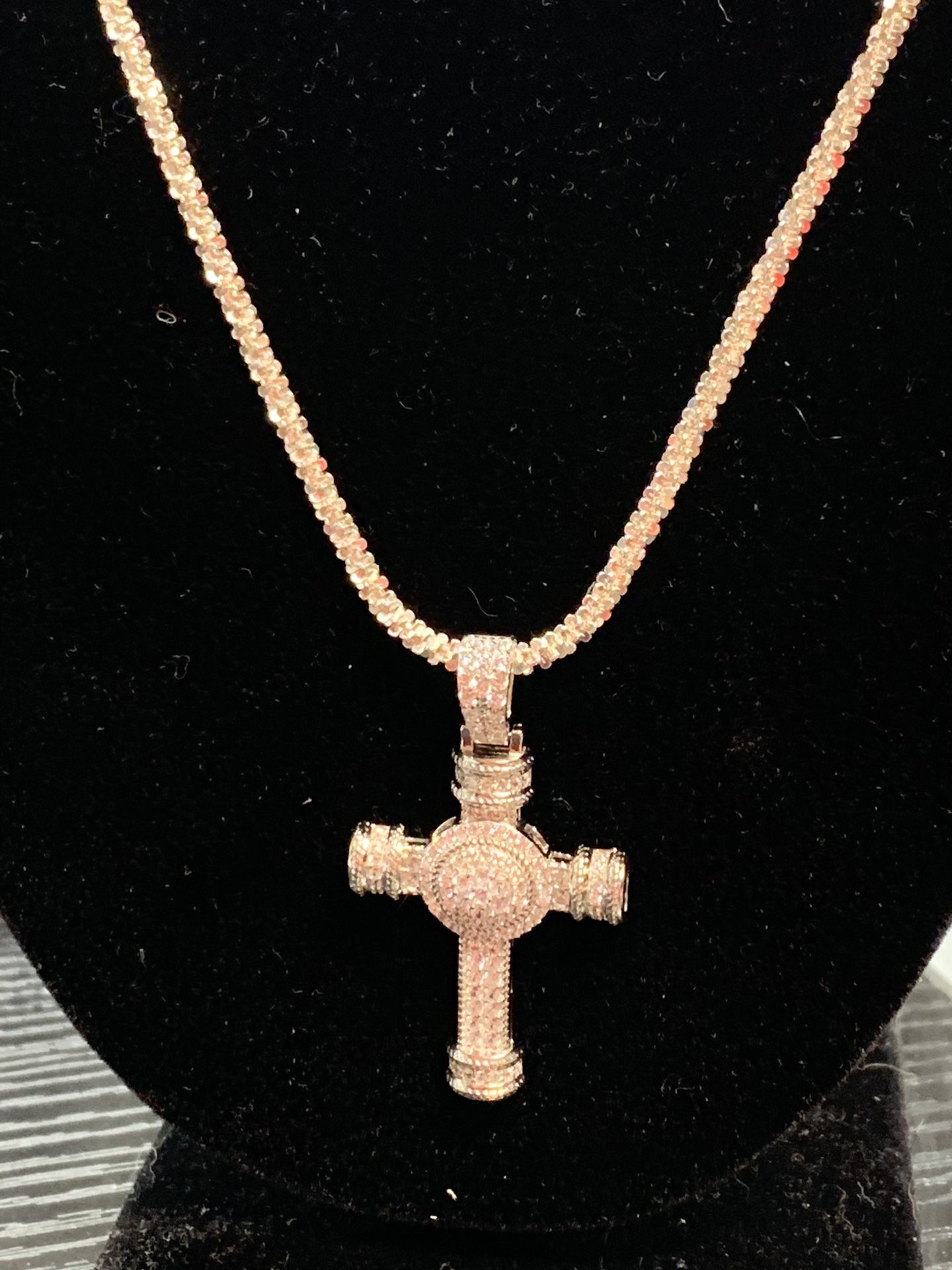New 925 sterling silver 24” necklace and cross pendant with a nice matching bracelet. Don’t know how much diamonds on the cross but it’s a beautiful piece. Perfect for a nice gift. $200 for the set.