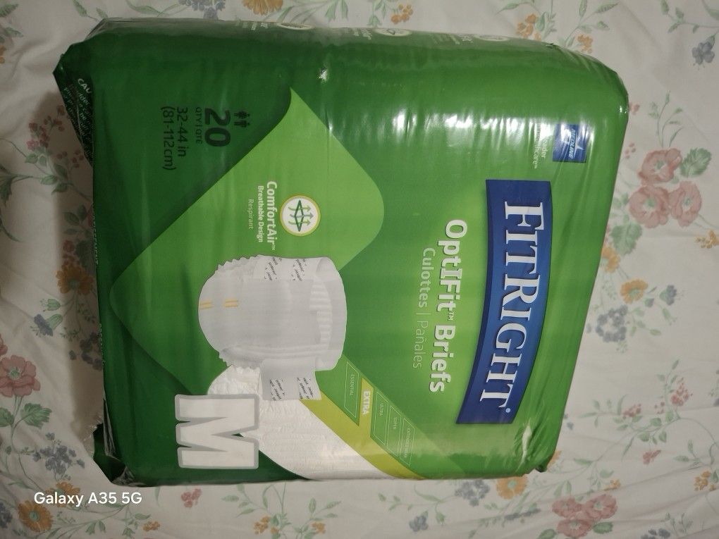 FitRight OptiFit Extra+ - Pañales para adultos con protectores para evitar fugas, calzoncillos desechables para incontinencia con pestañas, absorción moderada, M, 32-42 pulgadas, 20 unidades