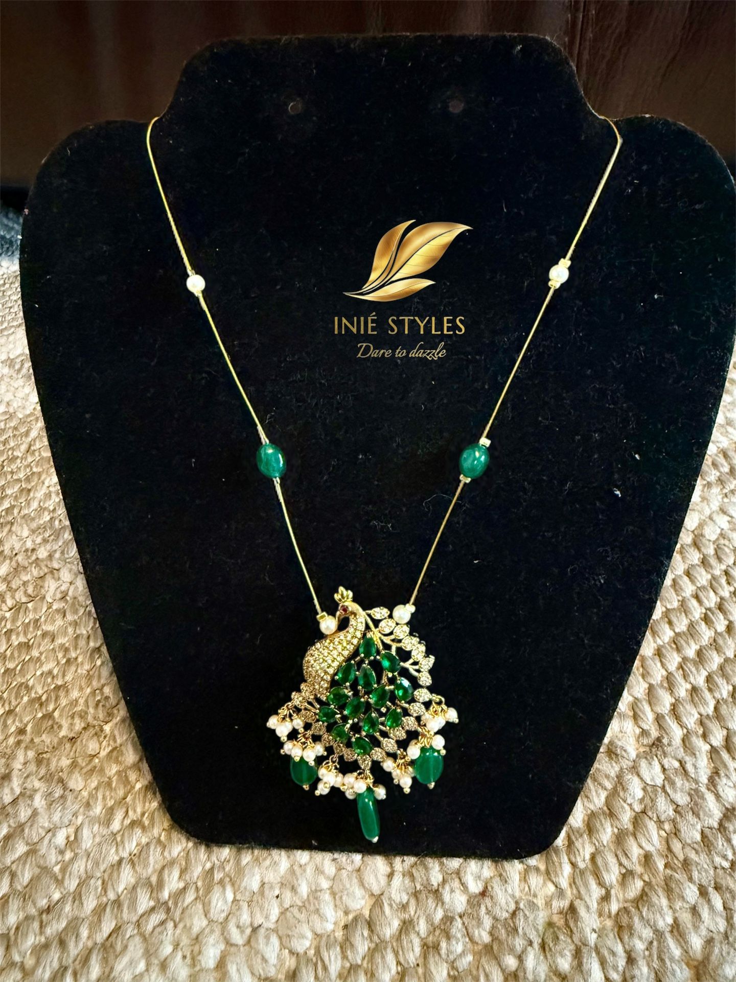 Invisible Long Set With AD Peacock Pendant