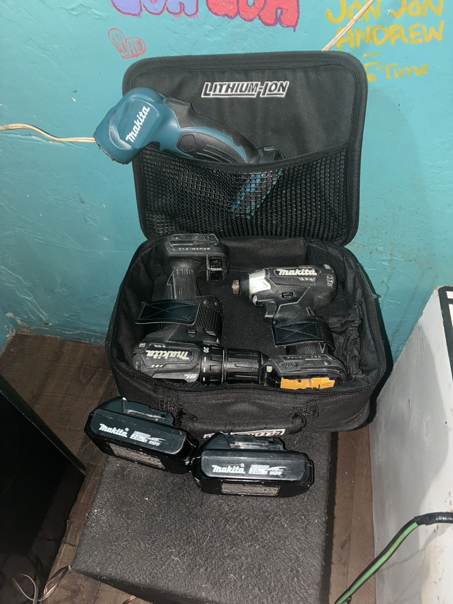 This is a MAKITA 3pc. Tool set & 2 battery’s These are the Makita subcompact LXT drill driver set with the carry bag ,Retails almost 300$. I also got the small Makita light thrown in as well . EVERYTHING WORKS FINE but IS LIGHTLY USED, A little TLC and they’d look brand new used them for about a month on. 3/4 Job sites . Honestly I think the impact driver is better then my DEWALT one I woulda kept them but I’m bought into the DEWALT battery line deep so these must go . 150 Semi-Firm but shoot I might take it or trade . Trade open in search of a Milwaukee pack out shop vac,Milwaukee m18 speaker,Dewalt XR plunge router (want most ) Milwaukee m12 jigsaw , Milwaukee track saw Milwaukee m12 sander,Milwaukee m12 ratchet,Milwaukee m12 caulking gun selling as. Full set this is what ya get •1/drill •1/impact driver •1/Small Light •1/Carry Case •2/2.0ah battery’s