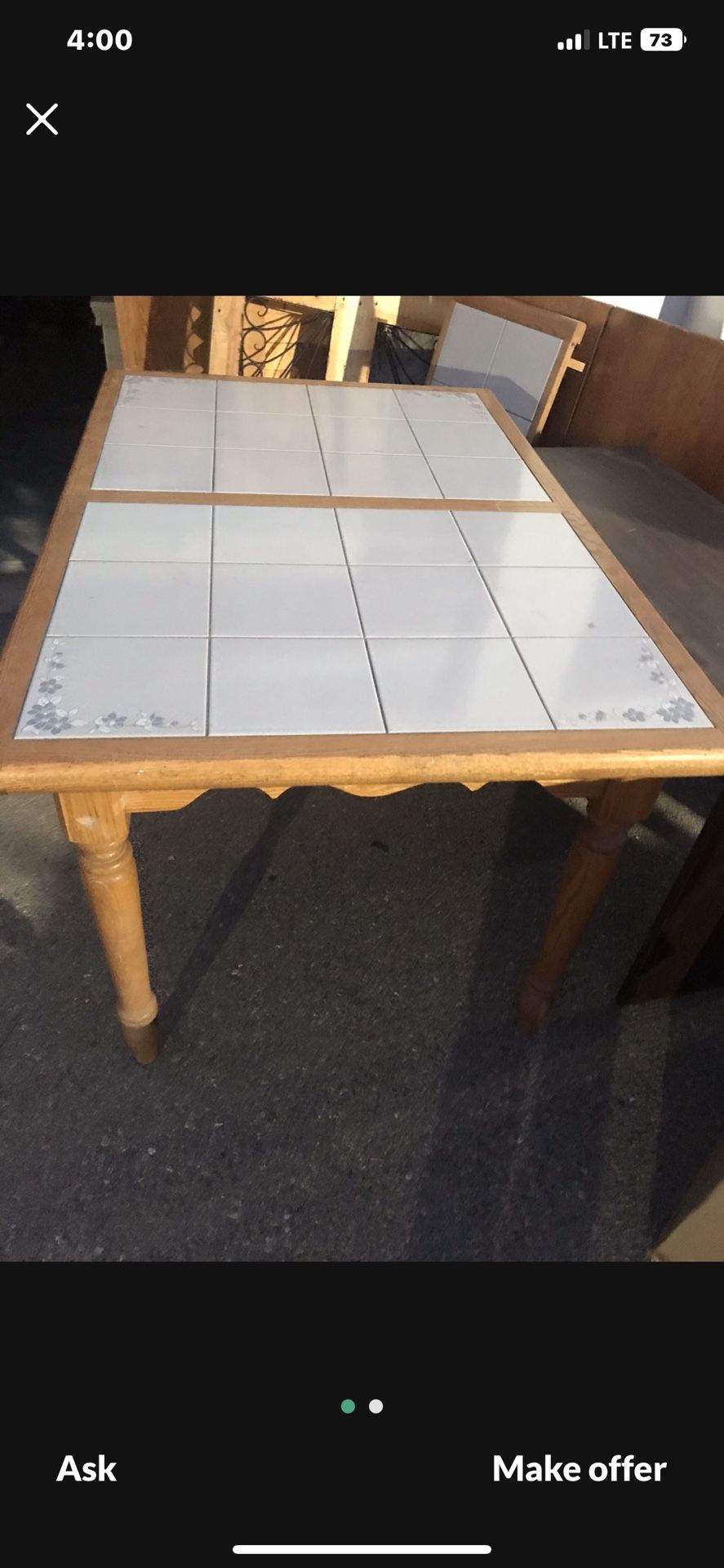 Dinning table has 6 chairs The top of the table has beautiful ceramic tiles Solid wood Has extension Sturdy Good condition Pick up westside Delivery available