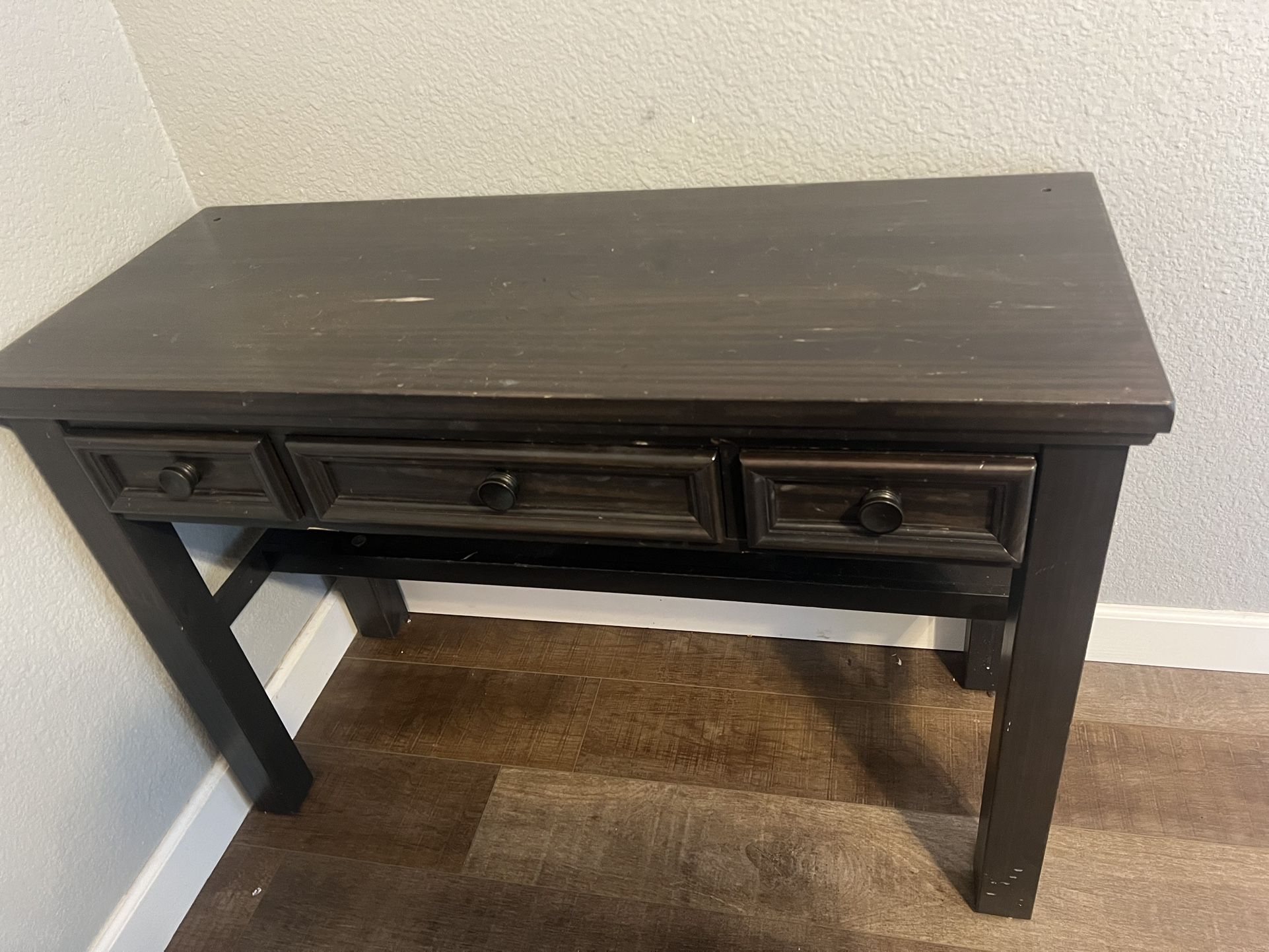 We bought this desk for our daughter from Rooms To Go. We reorganized her room last week and no longer need the desk. Small 3 draw desk. L44 x W17.5 x H30
