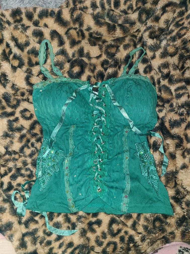 cute emerald green corset-like top #vintage