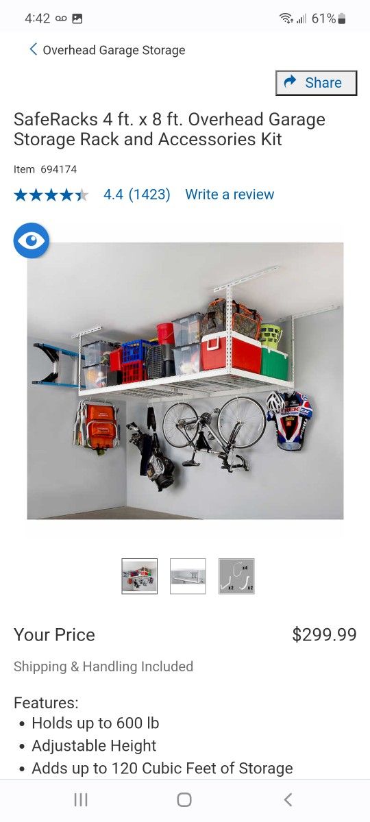 SafeRacks 4 ft. x 8 ft. Overhead Garage Storage Rack and Accessories Kit $200