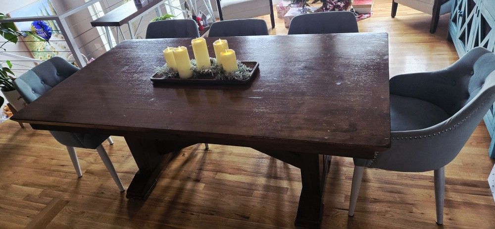 Beautiful solid wood dinning table from CostPlus World market. 72"" and fit 6 chair. Table is $35 matching Wood bench $35. Very pretty and durable.