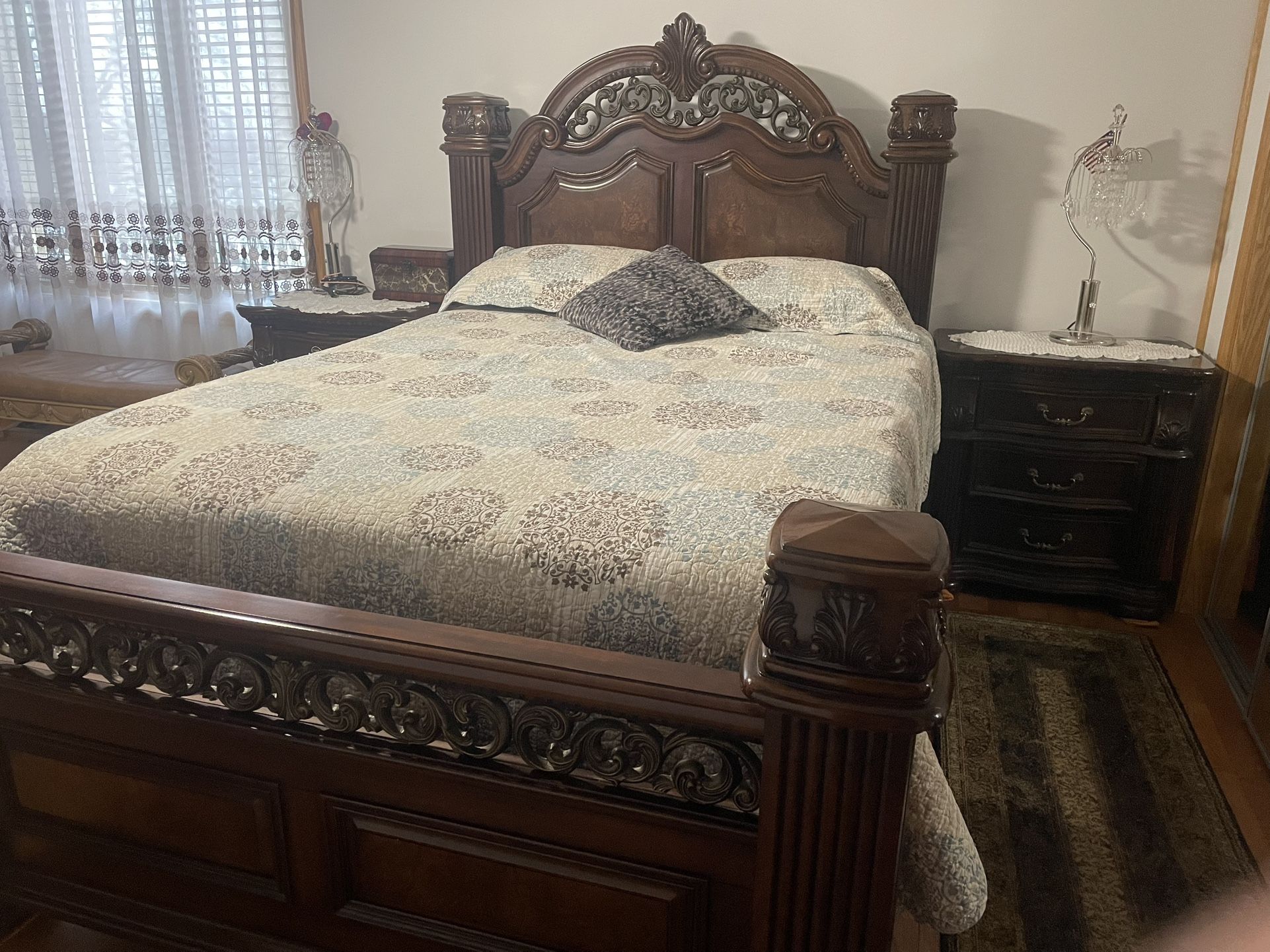 Solid wood, Bedroom set plus including two nightstands and a dresser and a rug