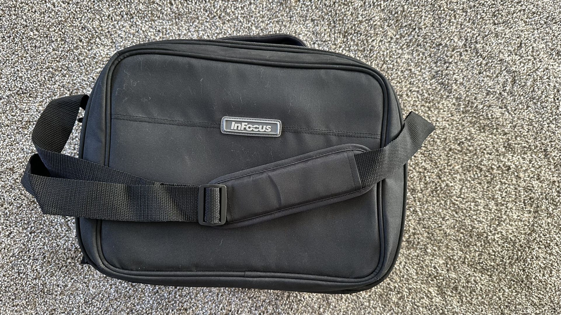 Compact and durable InFocus bag (15×10×5 in) with adjustable shoulder strap. Ideal for carrying tools, cables, and accessories.
