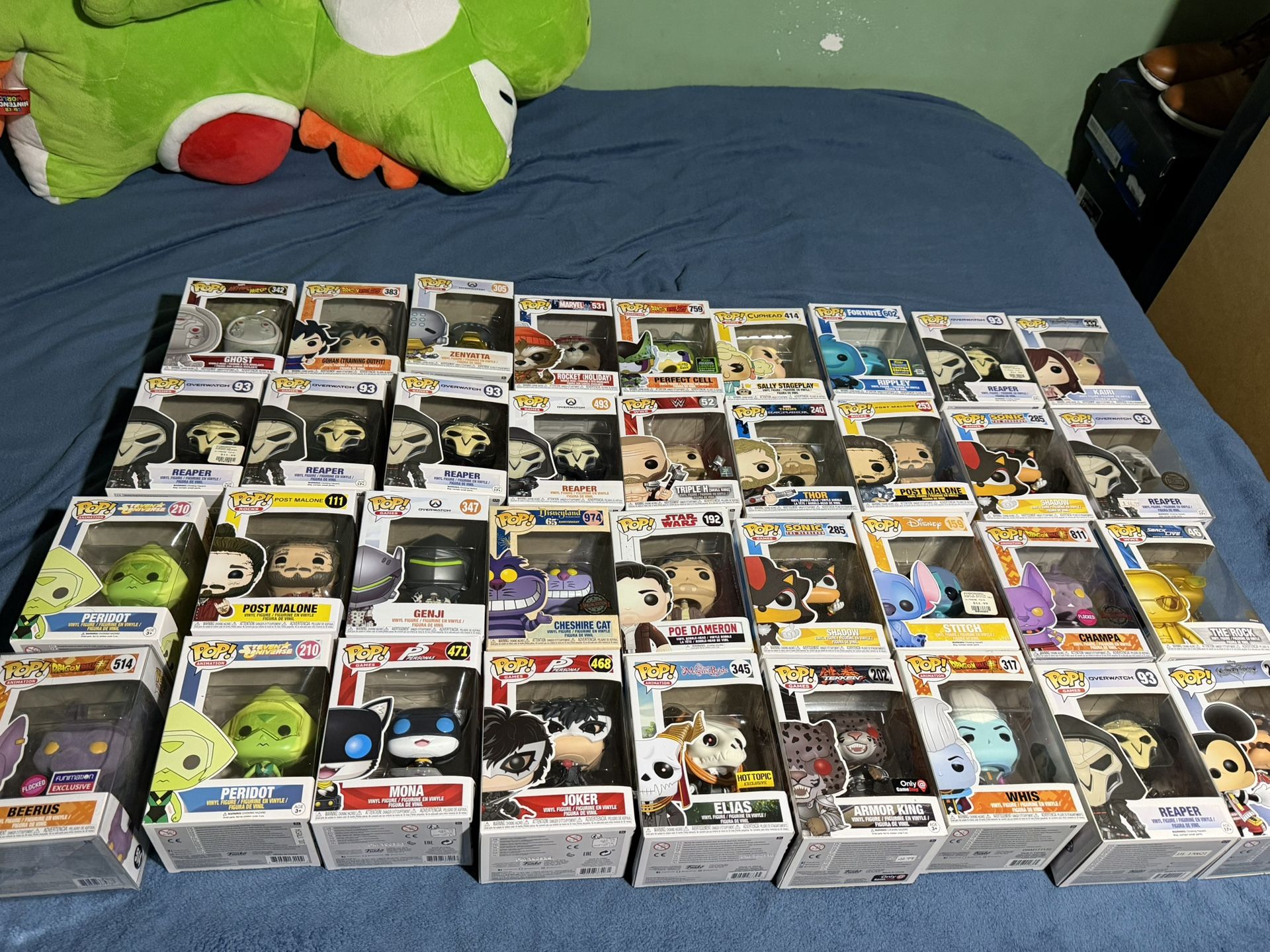 Selling off my collection here. Most of these are commons. If you are unsure about the price for certain Funko pops, please ask me. ON HOLD: Stitch Post Malone Post Malone (Knight) Peridot x1 Triple H Retsuko SOLD: Mona Joker Elias Armor King Peridot x2 Beerus Champa Rippley Perfect Cell Holiday Rocket Rocket Mission Breakout Cheshire Cat The Rock (Gold) Mickey Mouse KH Whis