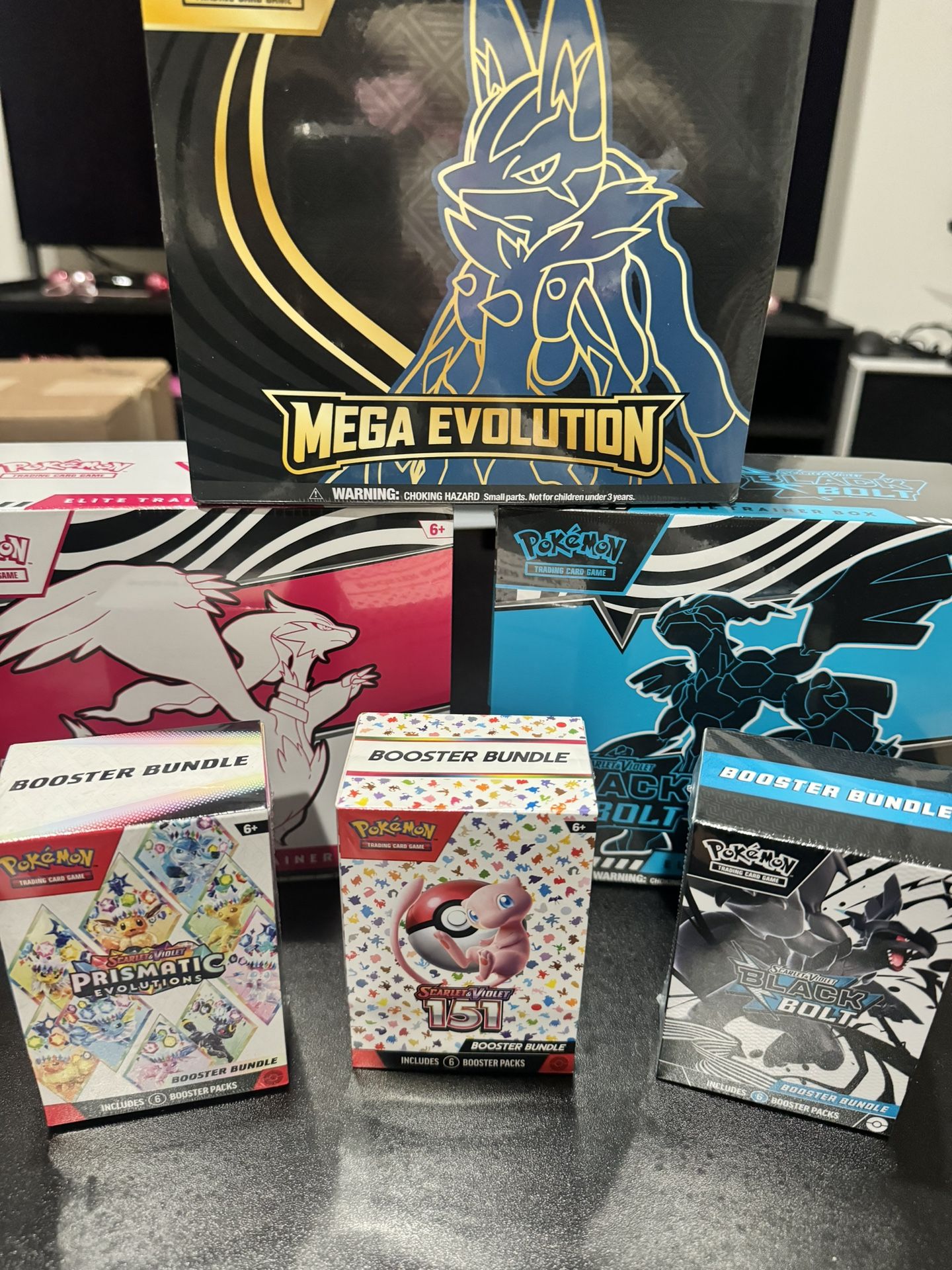 ETB* MEGA EVOLUTION - $75 WHITE FLARE - $80 BLACK BOLT - $85 *Bundles* PRISMATIC EVOLUTIONS - $65 BLACK BOLT- $50 151 - $130 We can work something out if you buy more than one!! •ALL SEALED•