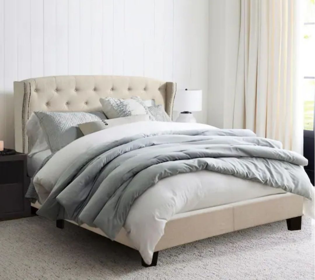 New in the box not assembled King size Fabric Upholstered Bed,Tufted Headboard Adjustable Height Bed Frame