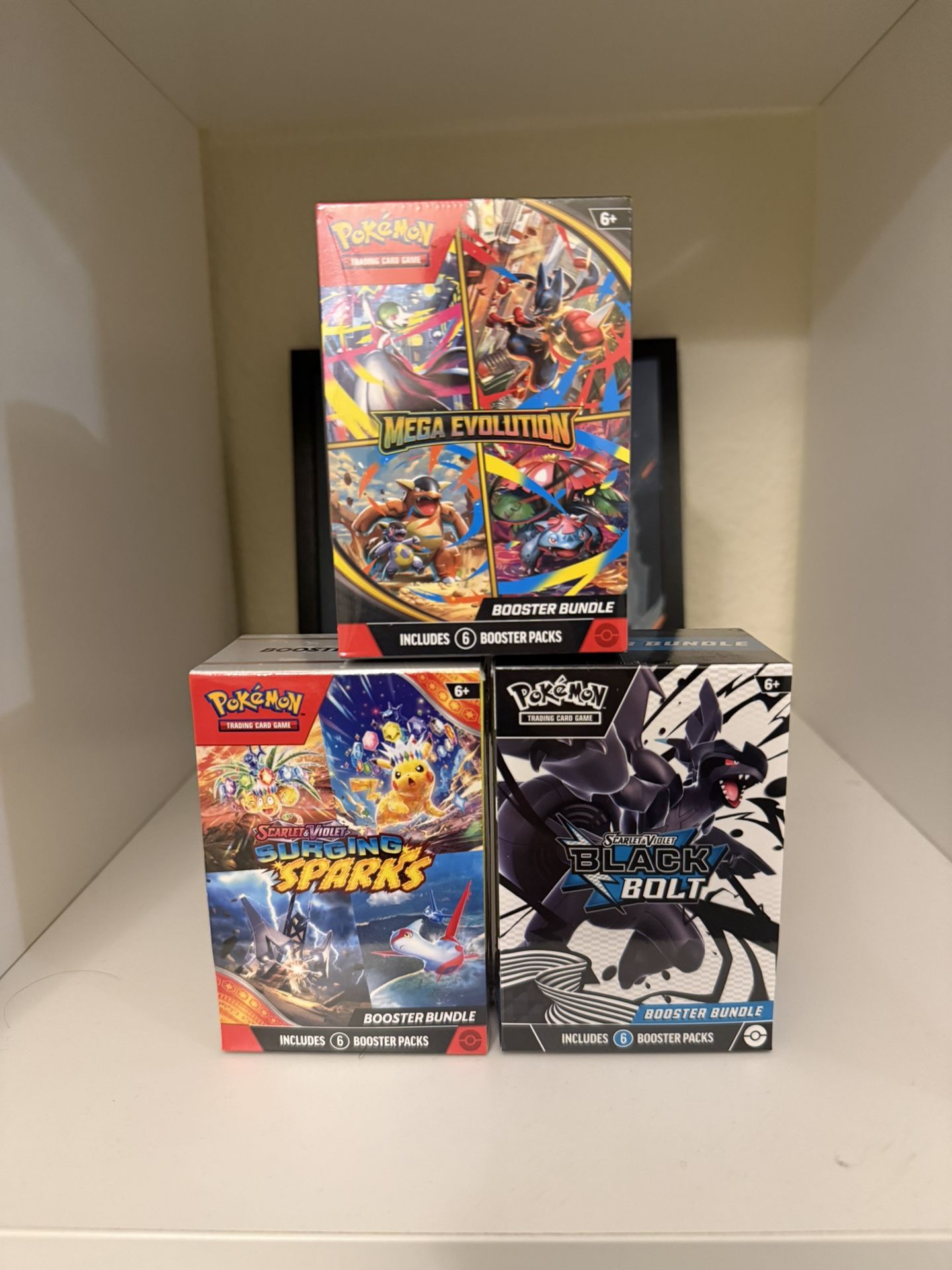 Black bolt - $50 ( sold ) Mega evolution - $45 Surging sparks - $40 Sealed