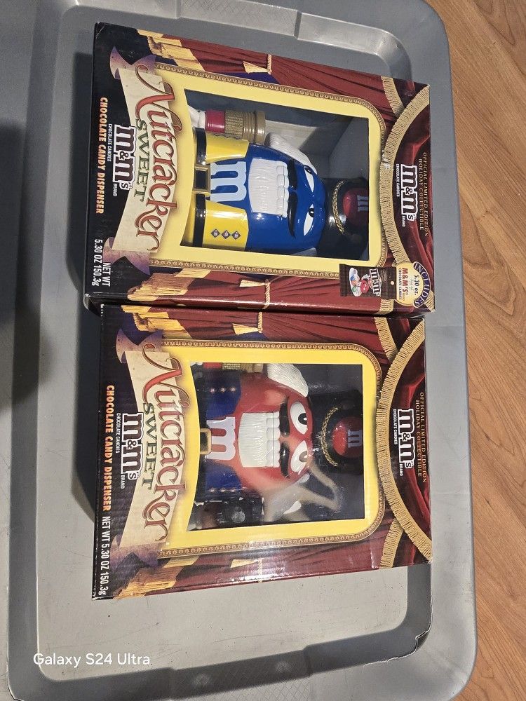 Red And Blue M&M Nutcracker Candy Dispenser in original box asking $15 each or $25 for both