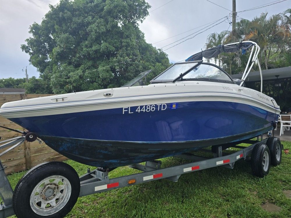 Available for sale, 2019 Tahoe 550 TS 19.9 ft. With a Mercury 150 4 stroke with only 160 hours. Great family boat. Recently came from service with ppw in hand. New trim motor new Bilge pump The boat has been polished on the outside with a 3 step restoration system by Maguiars. 4 New speakers by Skar: Front speakers need to be installed. (New in box) The trailer has been repainted with new reflective tape all around. 4 new tires , not even 100 miles old. With a spare tire in good condition. Garmin GPS. New 2 batteries lest then 2 months old. New double battery switch. Full tank of gas. Reason for selling: trying to buy something more fishible. The bad: The trailer needs new lights $25 on Amazon Canopy needs to be replaced $250 with 10 year warranty. The boat needs new upholstery. I can recommend someone with the best price and the same quality as everyone else for around $1500 to 2000 depending on what you want. Se habla español.