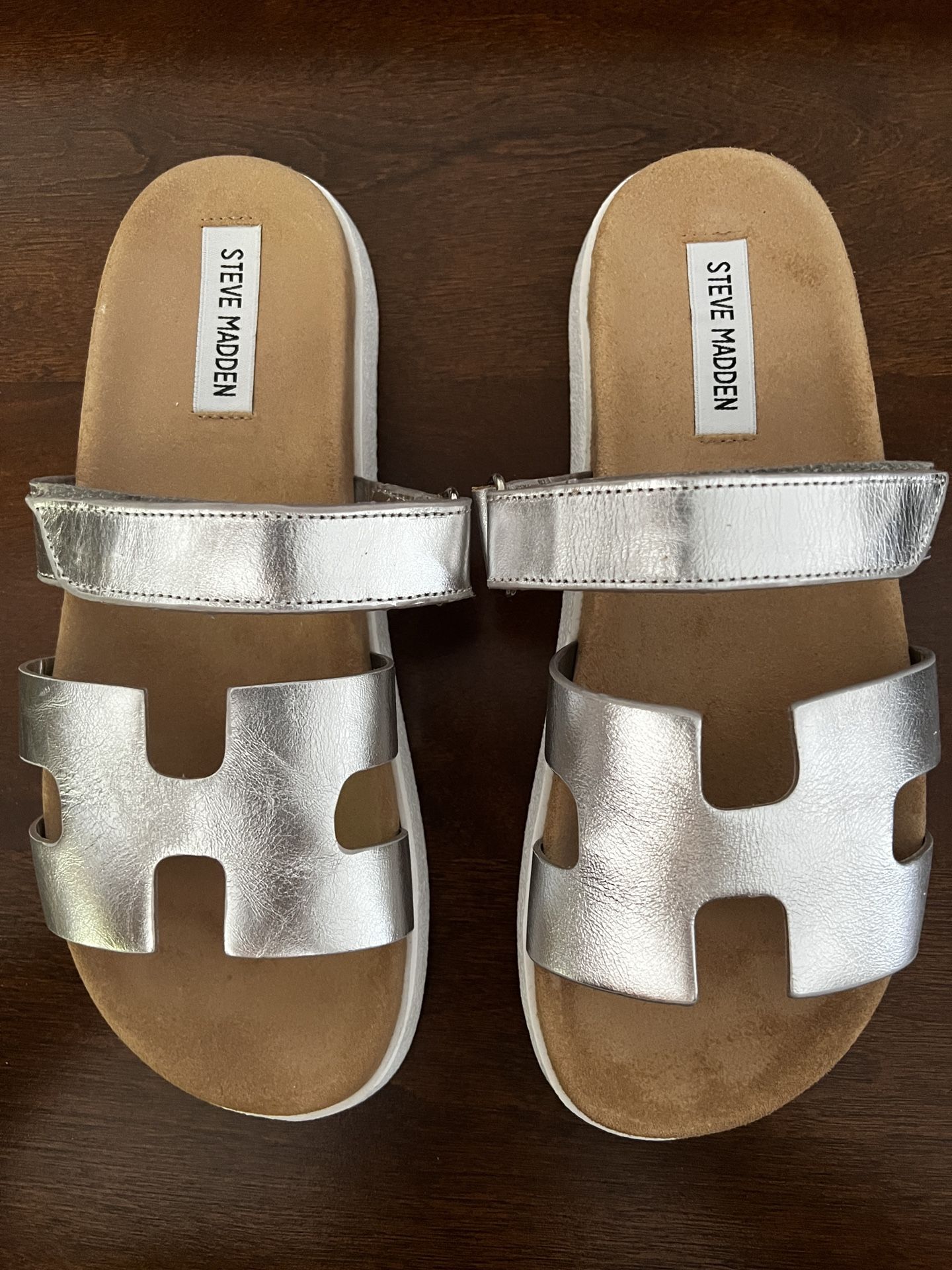New never worm Steve Madden Mayven slides in silver leather size 8.5 women