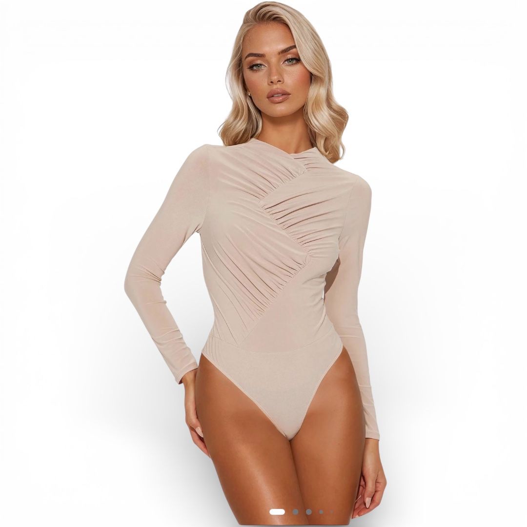Women’s LARGE Kirsten Ruched Bodysuit in Taupe from Fashion Nova | NEW !