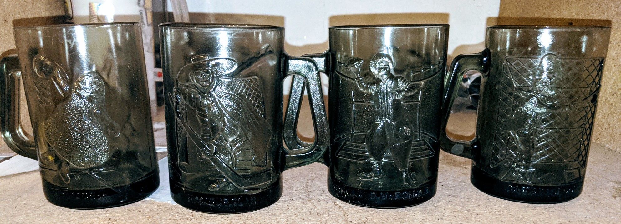 Ronald McDonald McDonald's smoke glass cup mug embossed raised design 4.5" tall