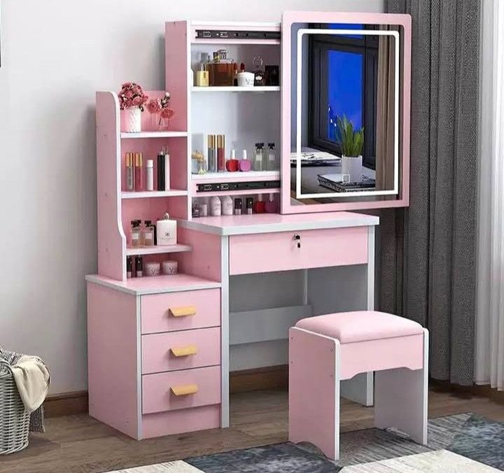 Pink Vanity Desk w/ Mirror & Lights – Makeup Station