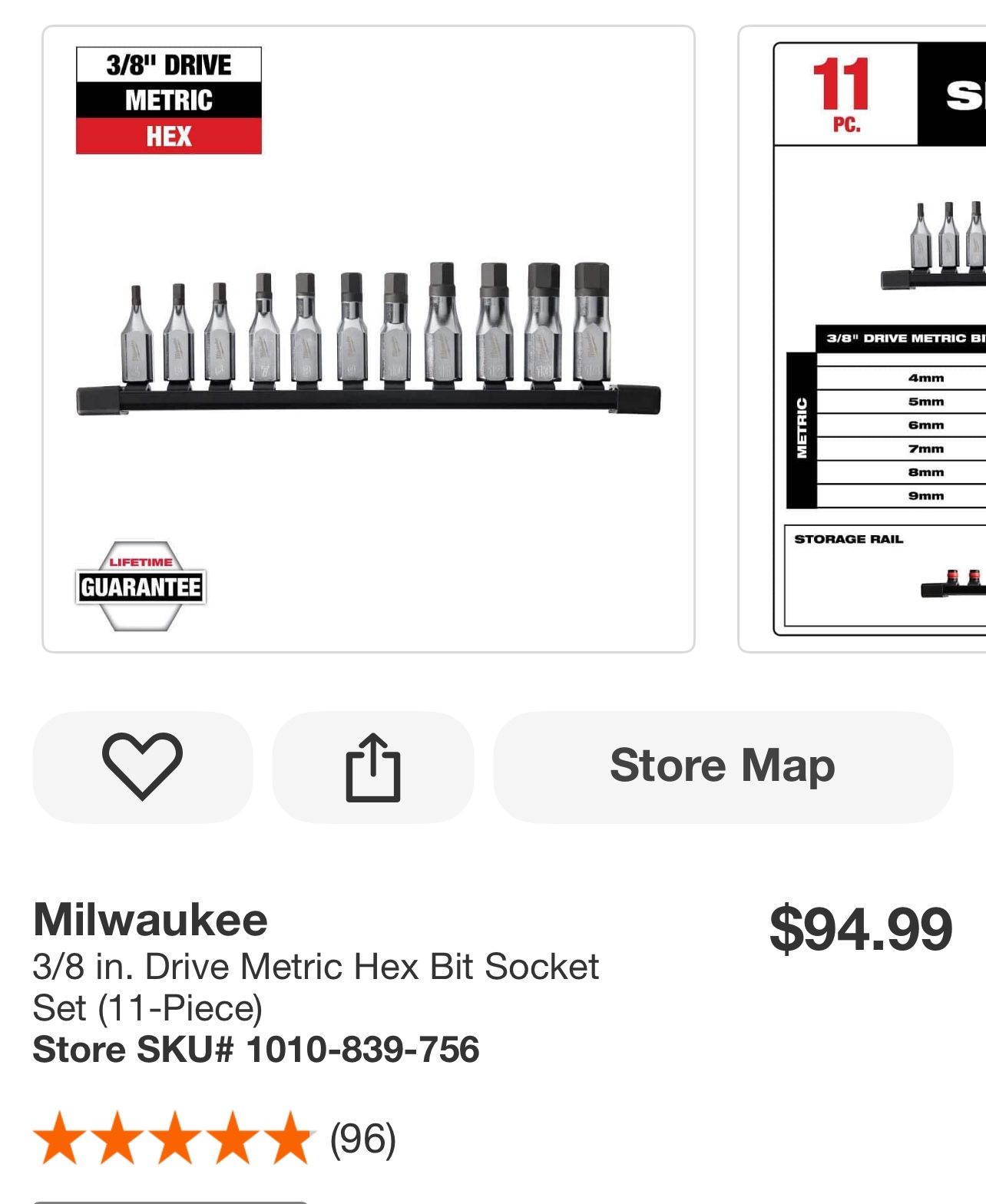 Milwaukee 3/8” Drive Metric Hex Bit Socket 11-pc