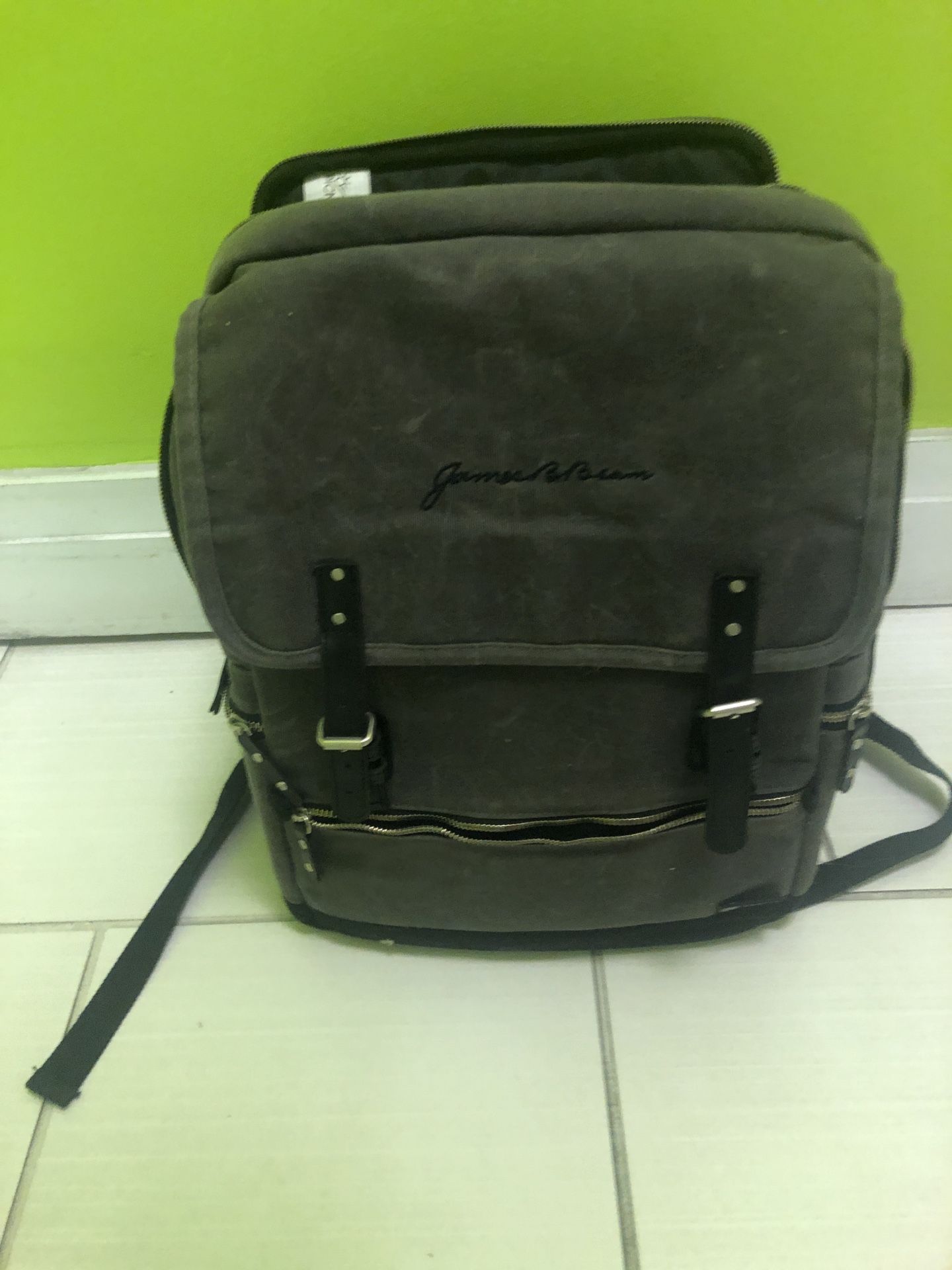 grey pack designed to hold up to three large bottles Specially designed pockets equipped for 16 essential bar tools and a removable bar tool organizer. Outfitted Bar Backpack. 11.5"Wx7.8"Dx15"H Waxed cotton canvas tote Doesn’t come with the bar tools