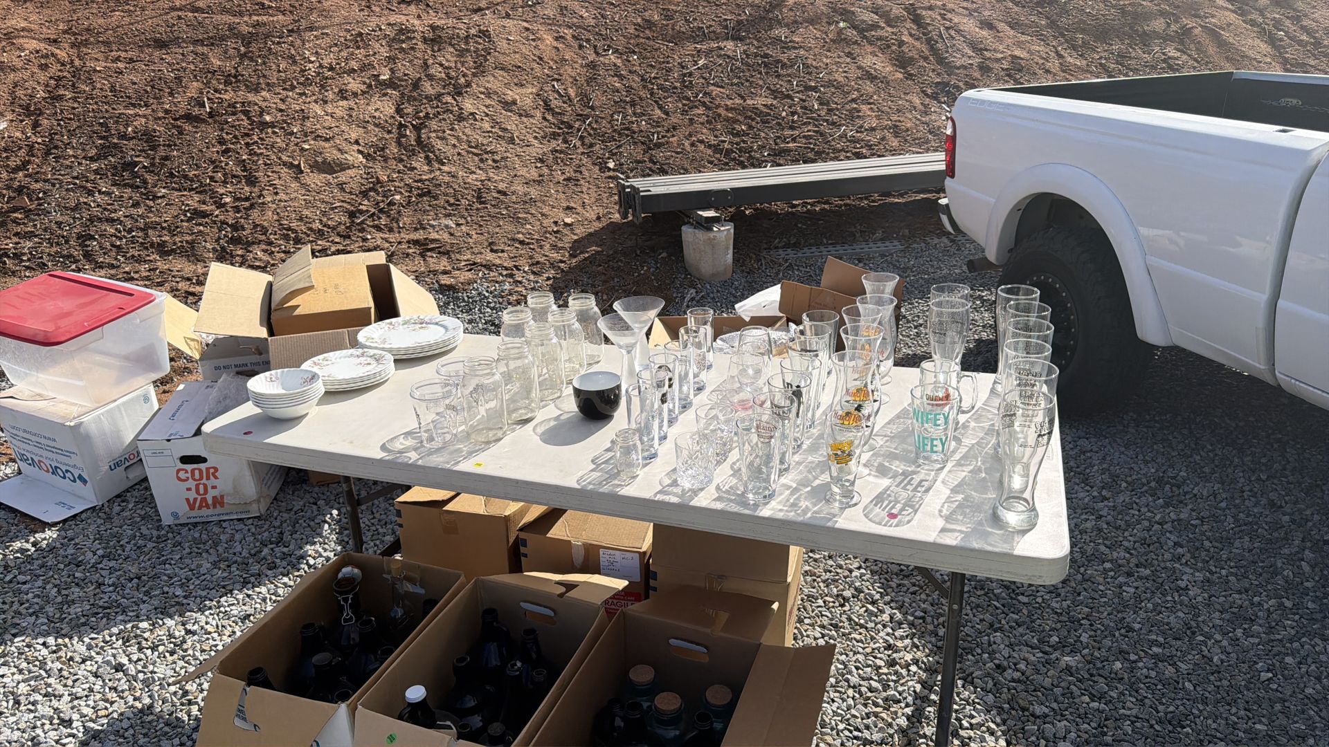 Glasses, mason jars plates growlers