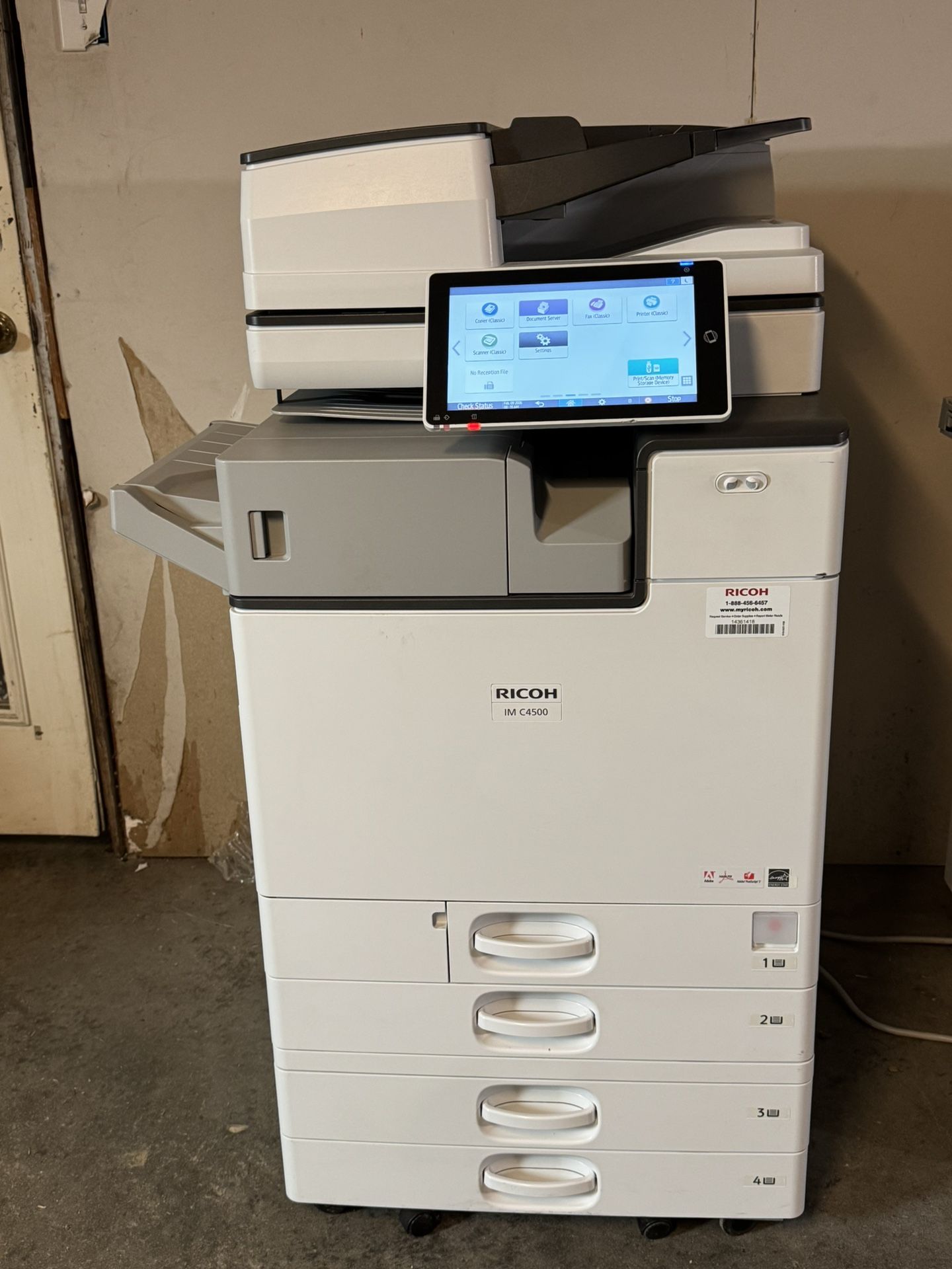 Color copier print scan fax low cost for toner almost new multifunction printer featuring a 10.1-inch Smart Operation Panel, 1200 x 1200 dpi resolution, and a 220-sheet Single Pass Document Feeder (SPDF). Ideal for mid-size offices, it offers scan, copy, and print functions, expandable 4,700-sheet paper capacity, and standard security features like data encryption.
