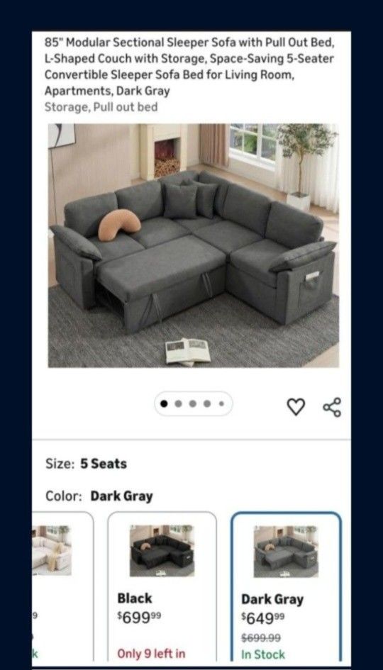 Gray amazon sectional... Comes in 4 pieces for easy transportation, I just recently bought it but felt like it was a bit too small for me so it's been assembled and ready to go paid $700 with taxes asking $550 firm price