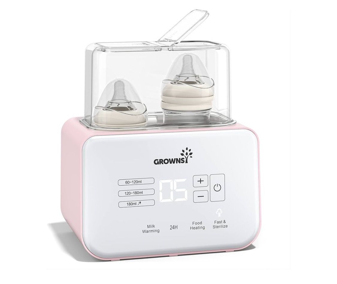 Takes only 3-7 minutes to heat cold milk to body temperature. It heats up quick enough to calm down a screaming baby in the middle of the night. Happy baby means happy mommy! It also comes with a sterili-zation function to deep clean bottles and nipples with steam. Such a great bonus for busy mom.