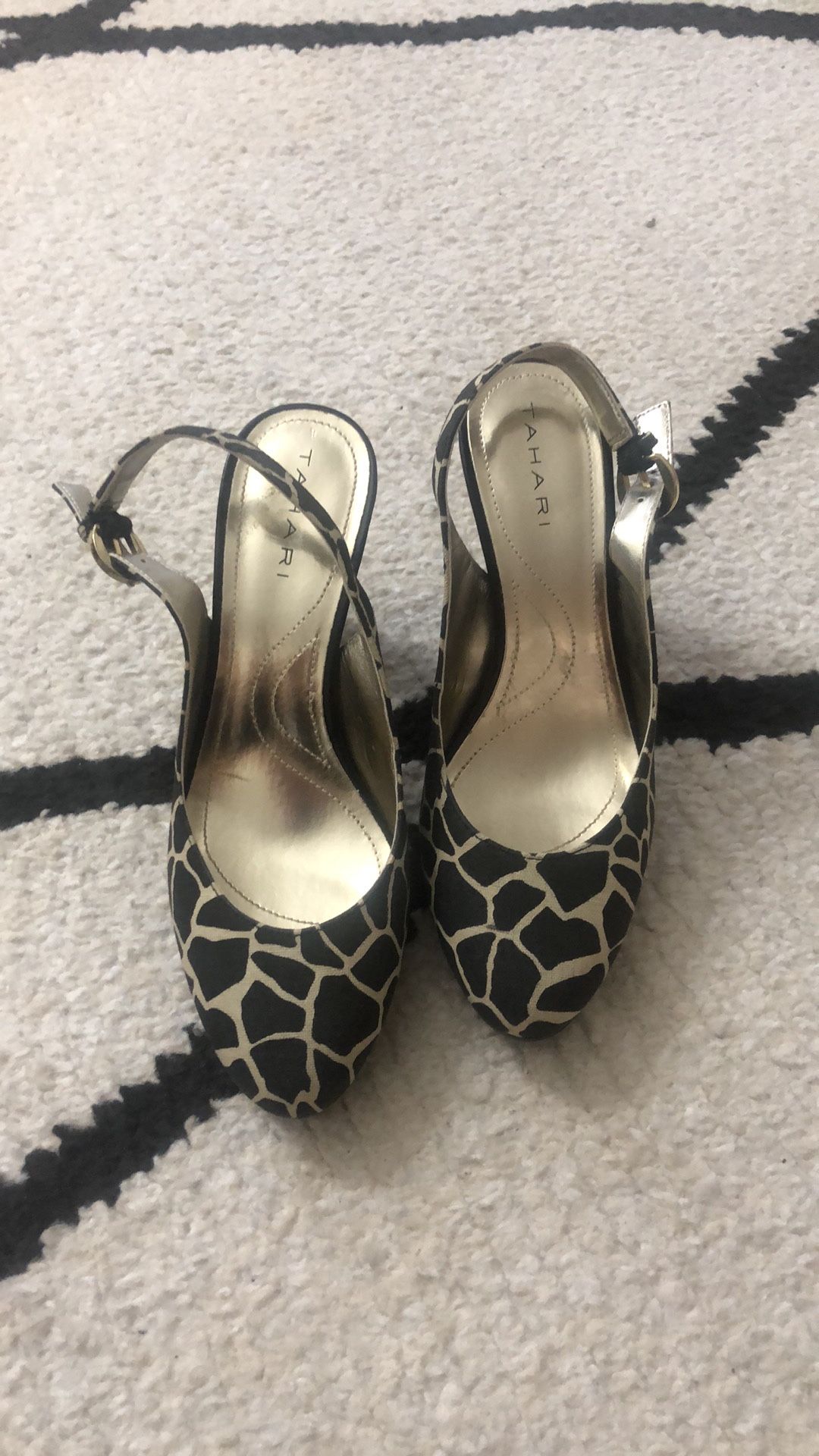 4” column heel. Buckle closure. Closed rounded toe. Leather sole. Some wear but great condition.