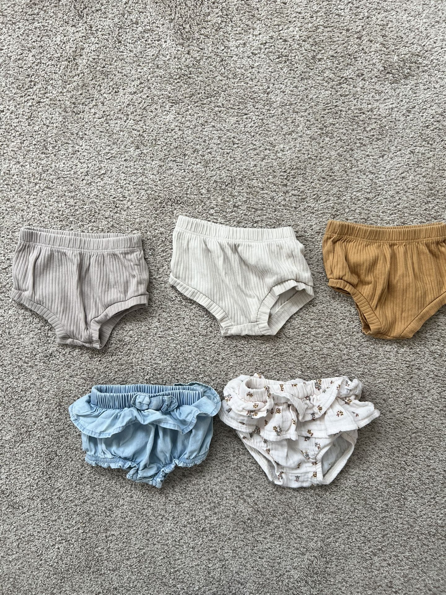 Cute bloomers for baby! Denim and floral ones are newborn, solid ones are 0-3 months. $5 for all 5.