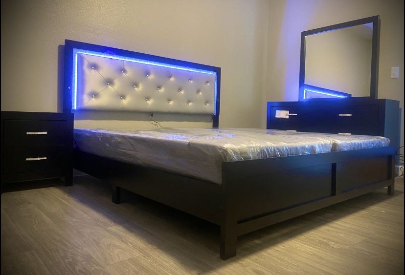 4 Pcs Black Bedroom set with Led lights