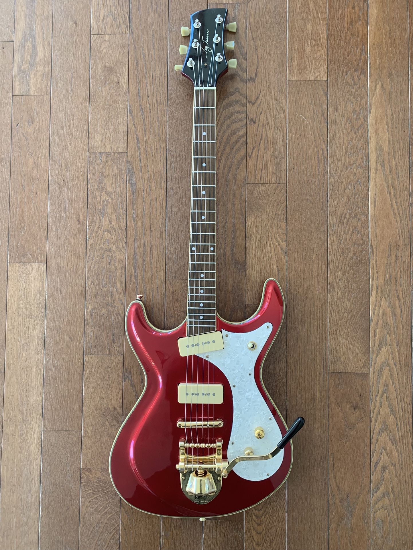 Jay Turser “Mosman” guitar. Great guitar, but we never bonded. Looking to trade for Jazzmaster, Jaguar, or anything wild or interesting in the guitar world. Features: Burns Mark 8 vibrato (pretty rare) Bootstrap P90 pickups Upgraded bridge (comes with original) Full set up by Bigfoot music Feel free to reach out with any questions. Not interested in selling at the moment.