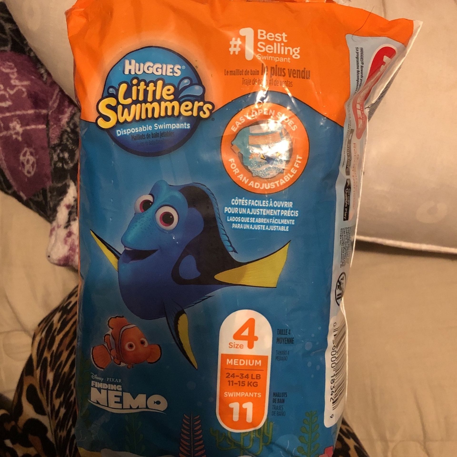 Size 4 swim diapers. Used one and my son doesn’t need them now. 10 left