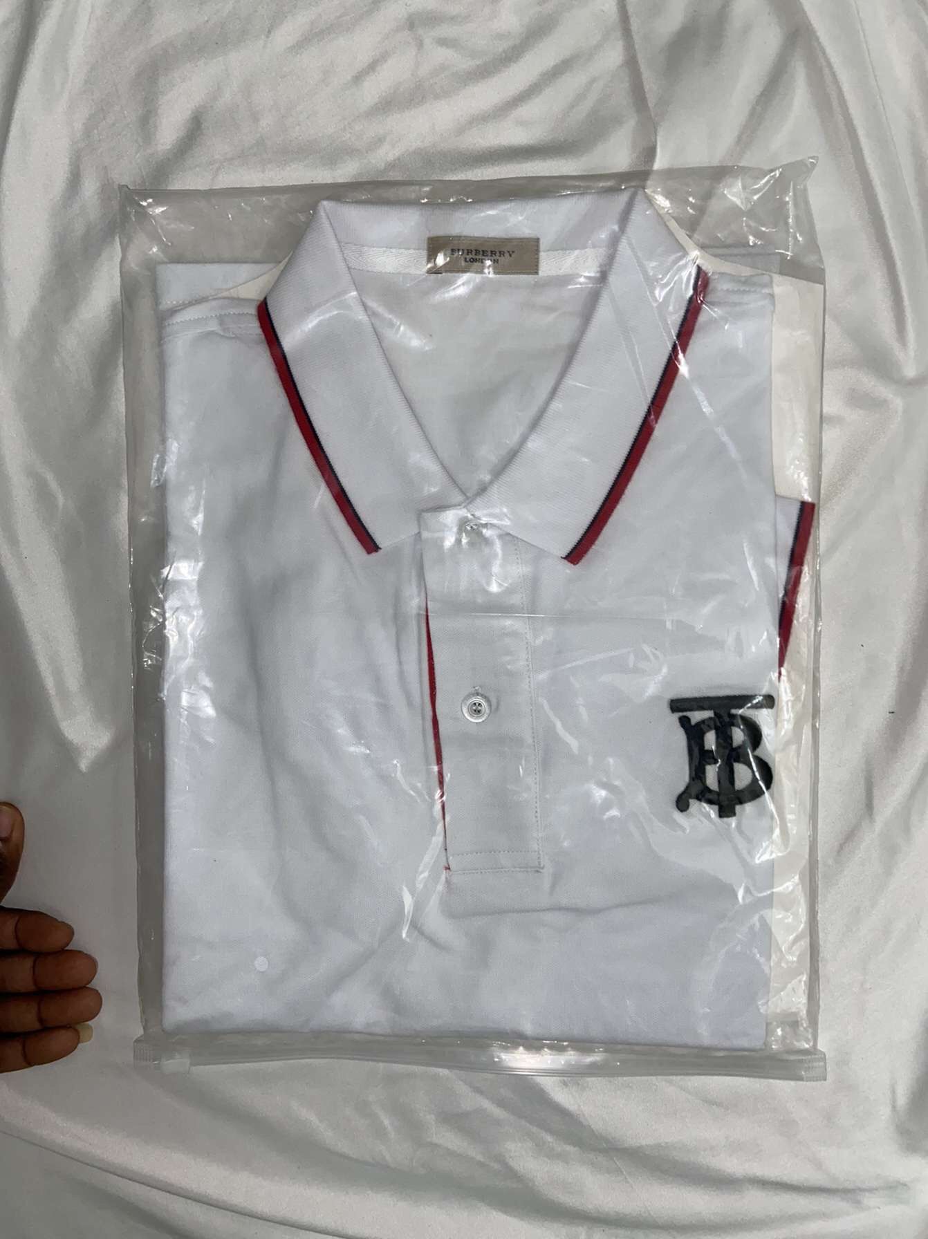 Burberry icon stripe placket Cotton pique polo shirt