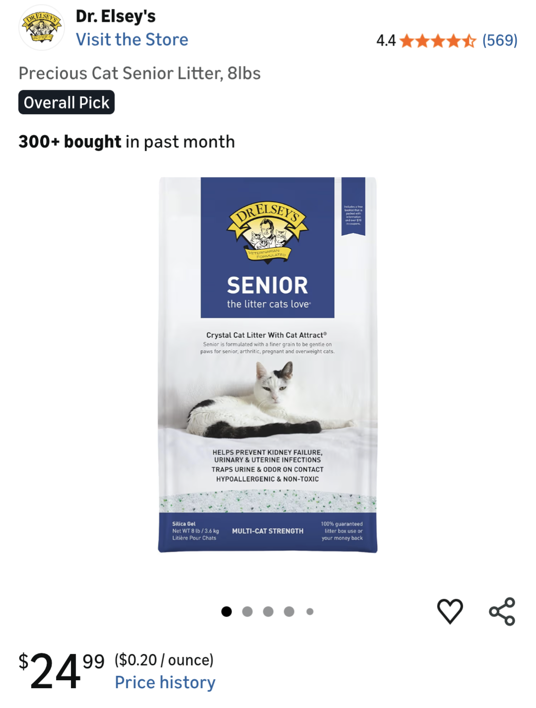 Dr. Elsey's Senior Cat Silica Gel Litter, 8 lbs (10 bags)
