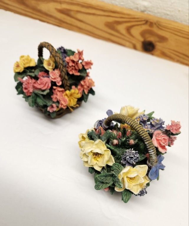 Vintage 1995 Ardleigh-Elliott Basket Bouquets Collection music boxes. Begonias box plays "Everything is Beautiful", Magnolias box plays "Raindrops Keep Falling on My Head". Each box is operational and approx. 3"x3"x3". Price is for the set of two, $30 each if sold separately.