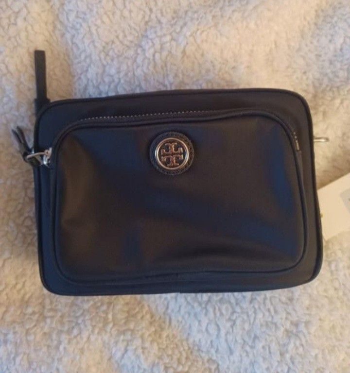 Tory Burch Mini Virginia Crossbody Bag New Authentic Black color Details Detachable, adjustable shoulder strap, 22.5" drop Dimensions: 7.2"L x 2"D x 5.2"H Top zip-around closure Two exterior zip pockets, one exterior back slip pocket, one interior back slip pocket Lined Body: 100% recycled nylon; trim: 56.8% leather fibers/32% polyurethane/11.2% polyester; lining: 100% recycled polyester
