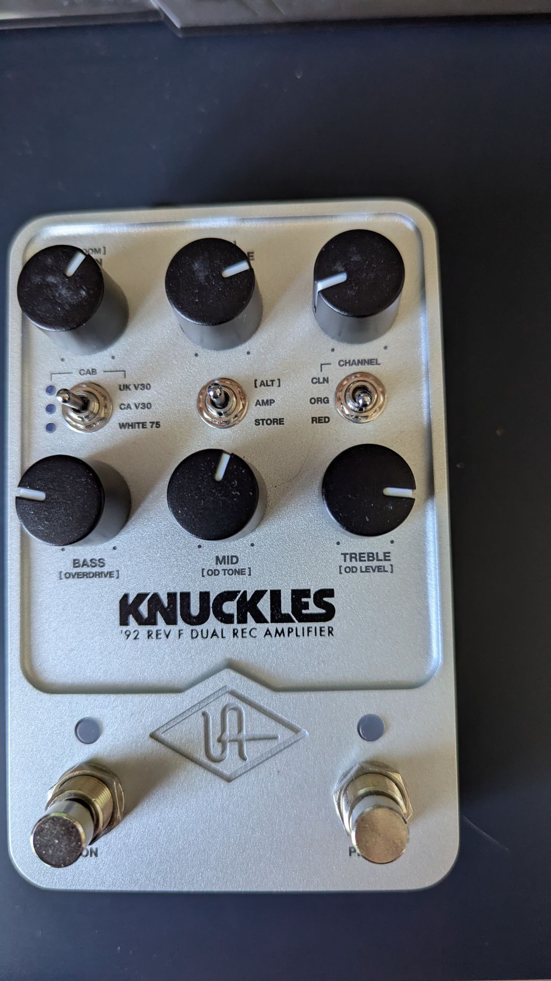 Basically brand new, only a few hours of use. Models the Mesa Boogie Dual Rectifier. Pretty awesome pedal just went a different direction (got an amp instead). Original box, paper work and USB cord included, didn't come with a power adapter. Uses typical 9v. From UA: Get the raw sound of punk, alt rock, and metal under your boots. Unleash the famous 1992 Rev F Dual Rec amplifier tones that fueled punk, alt rock, and metal from the ’90s onward* Dial in genre-defining sound with TS-style overdrive, preamp boost, noise gate, channel switching, and more Experiment with six classic mic/speaker pairings used on classic ’90s alt rock anthems and metal records Get MIDI control**, improved Bluetooth and hardwired connections, and new footswitch modes with four amp presets at the ready using updated UAFX Control app