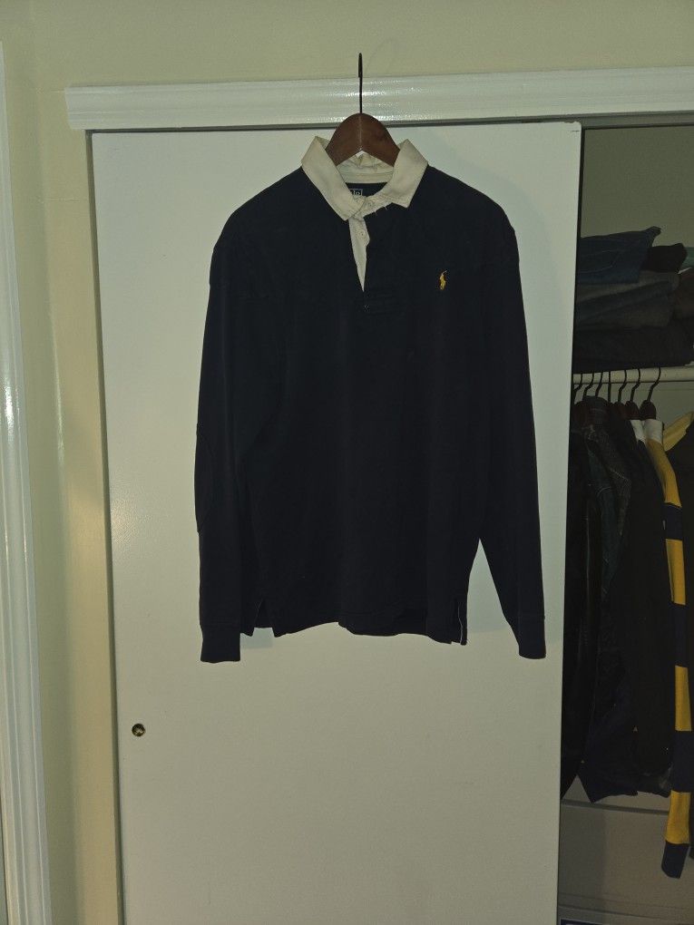 Size large. Navy blue long sleeve polo. Great condition. Has lots of life left.