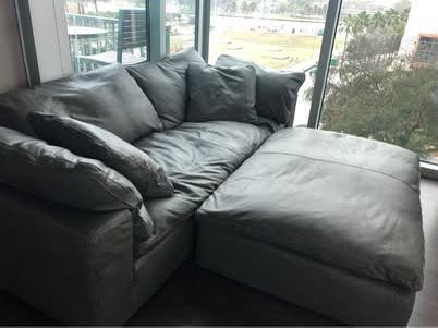 Restoration Hardware Leather Cloud couch and coffee table ottoman