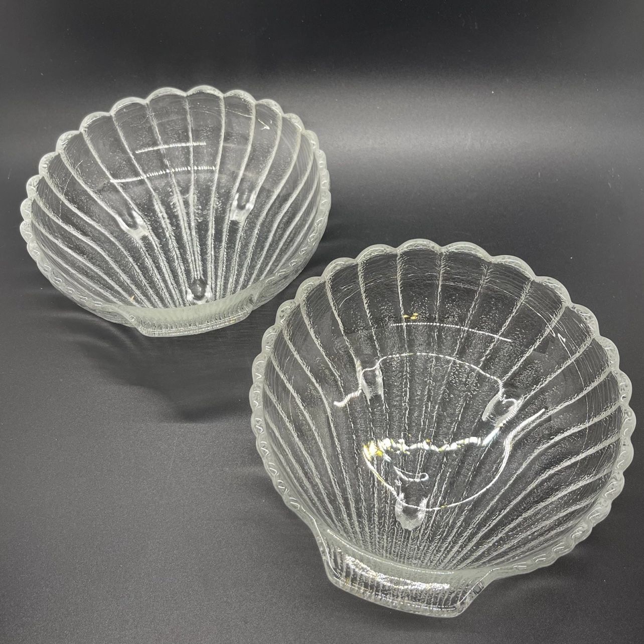Set of two glass clam shells Size: 6in Diameter RRB3