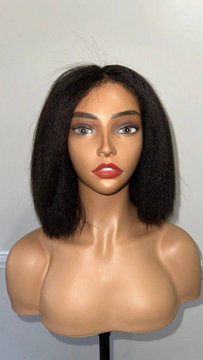 The unit is a beautiful realistic kinky straight texture bob, which has a natural relaxer appearance, and texture with 100% human hair to achieve its volume, and natural look as if it was coming from the scalp. This wig is brand new out the package, and looks exactly as pictured. Please contact me for any questions, all wigs are final sale. (Location Norfolk) Thank You π π Hair 100% Raw Hair Density 180% Lace Size 5x5 HD Lace Hair Color Natural 1B Hairline Kinky Edges Ventilated Hairline Can Be Dyed Yes Straps Adjustable Circumference 22.5 inches, Standard Cap Size Orig Price $160