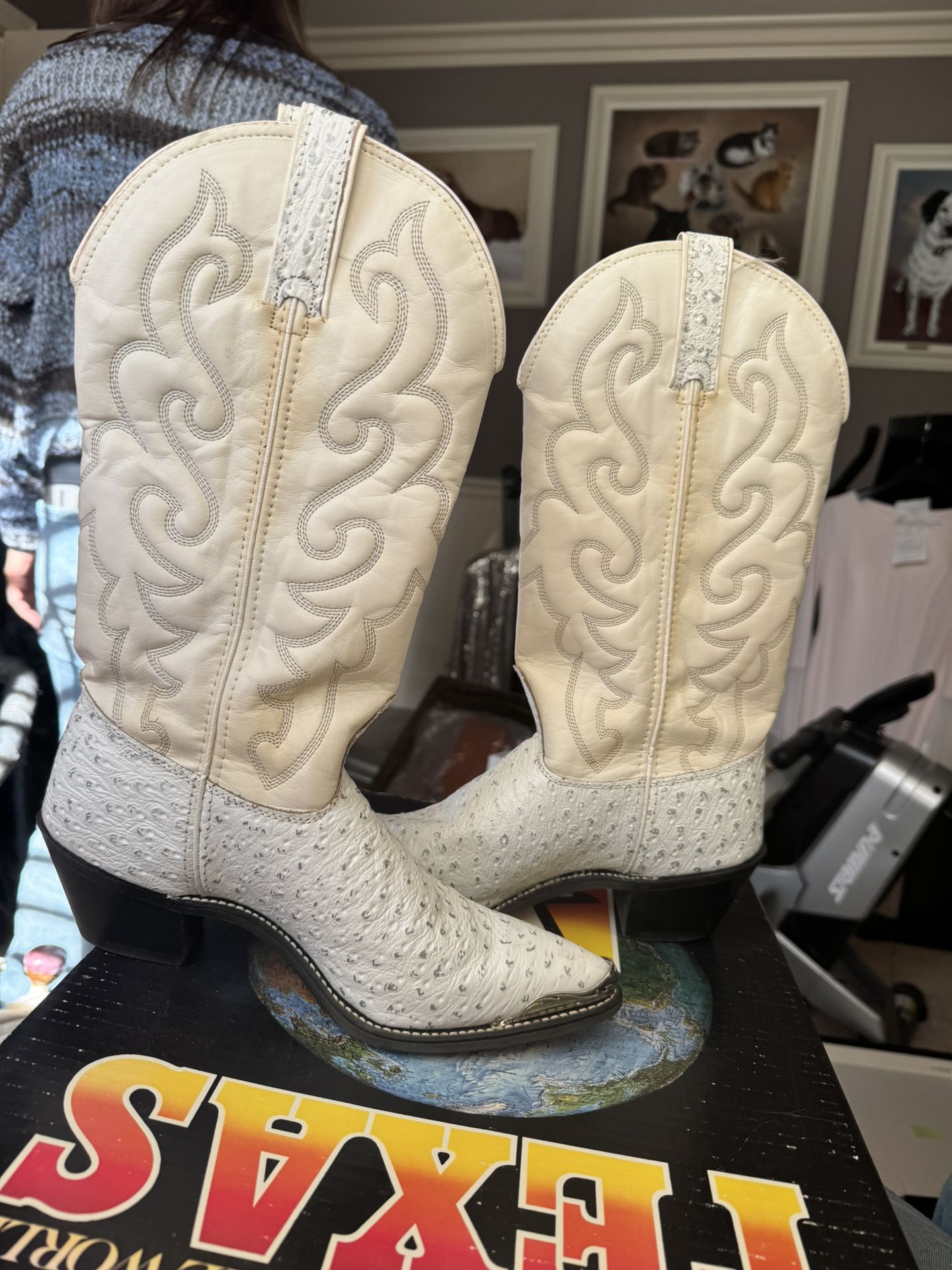 Western white cowgirl boots size 8.5 Ostrich lower, leather upper Worn once - slight yellow discoloration $120 obo