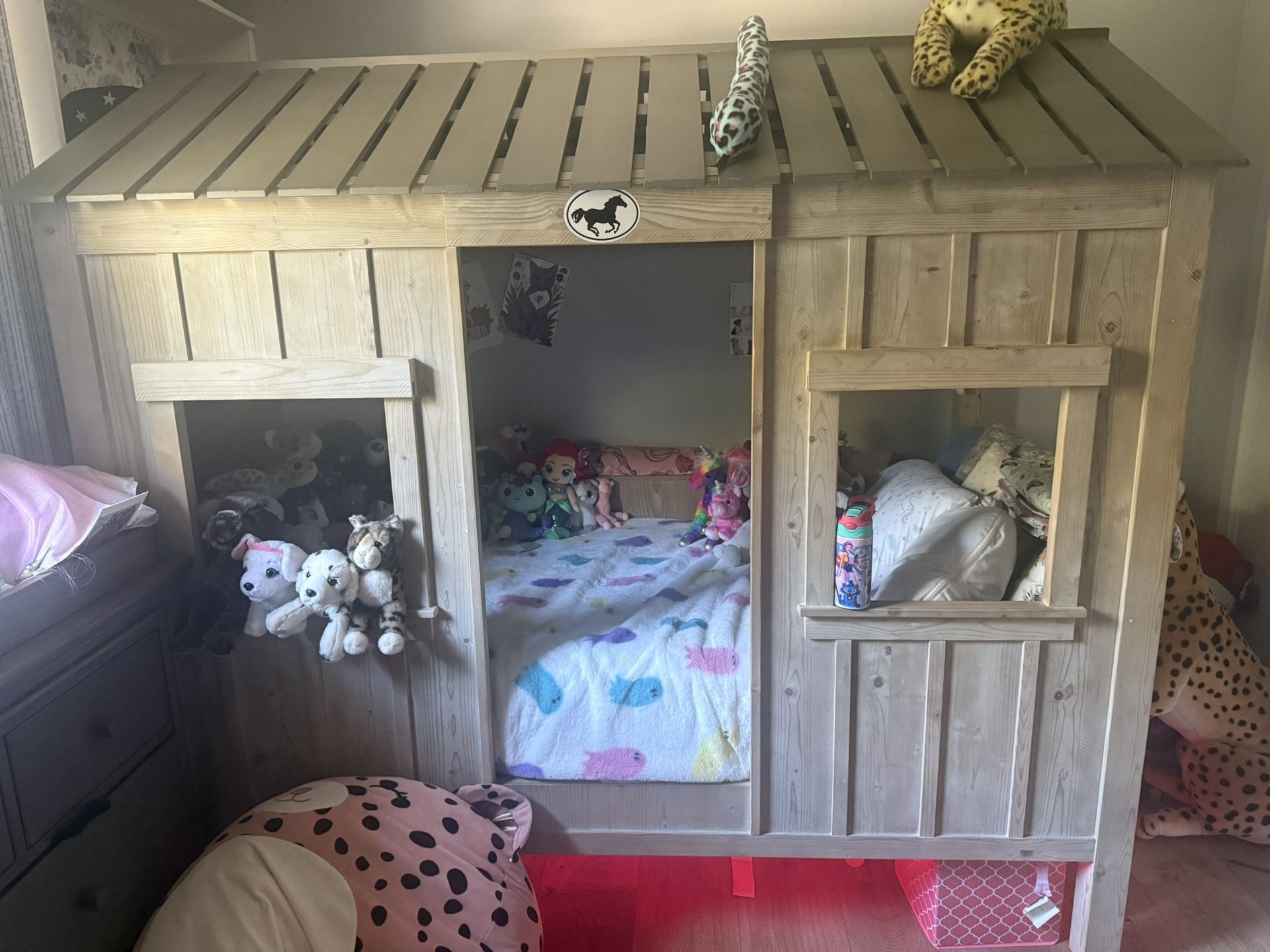 Very sturdy twin cabin bed. Mattress and curtains not included. Great condition