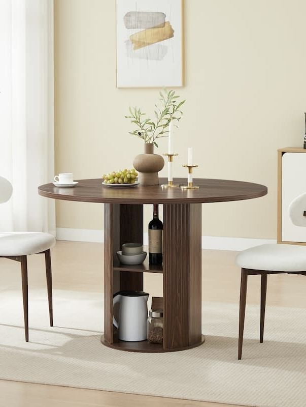 Brand new in box with Shelf Storage Modern Pedestal Circle Kitchen Table for Dining Living Room Home, Walnut
