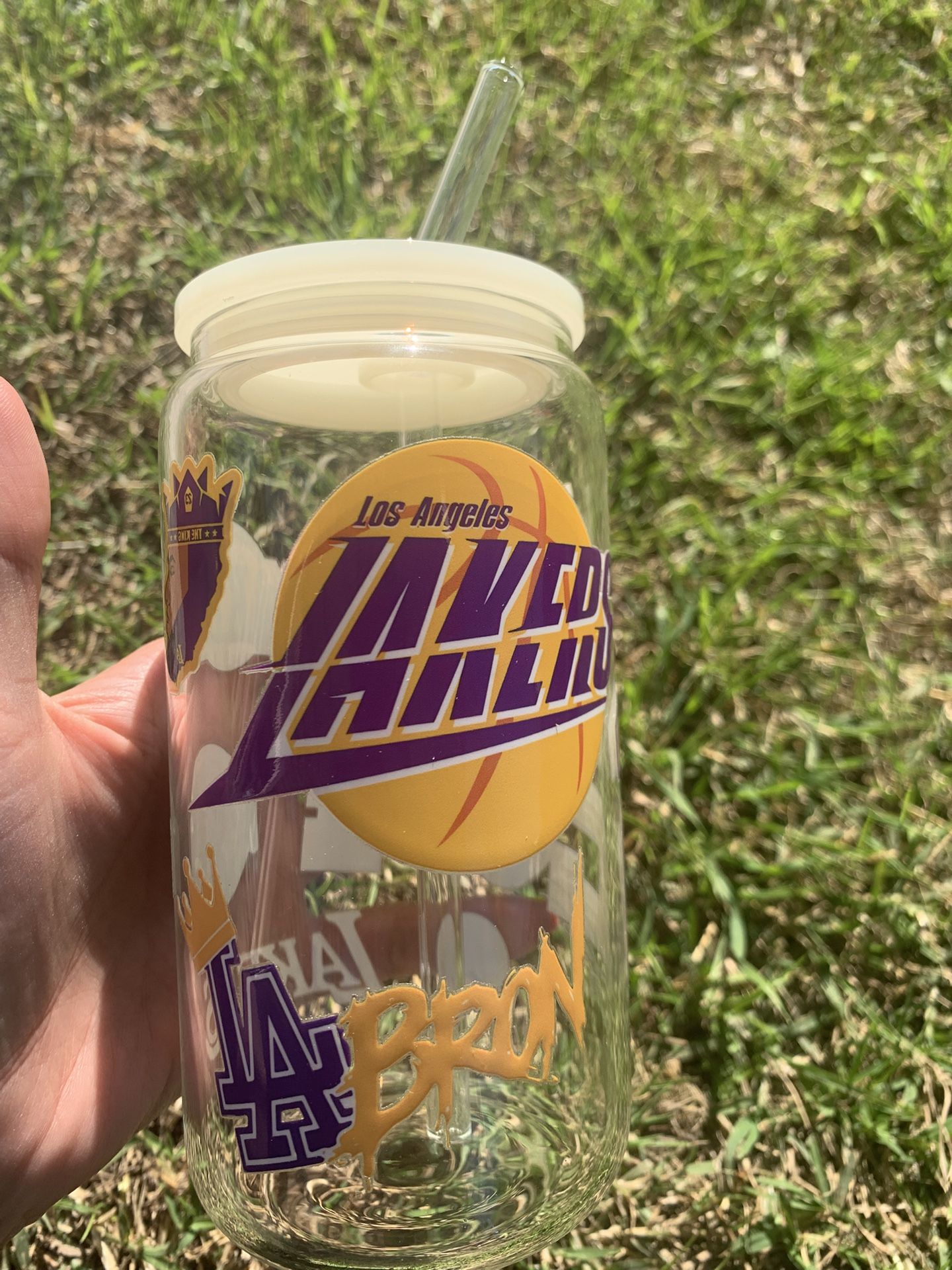 Kobe -LeBron 16oz glass cup-glass -straw -acrylic lid Los Angeles Lakers Full cup wrap New $12