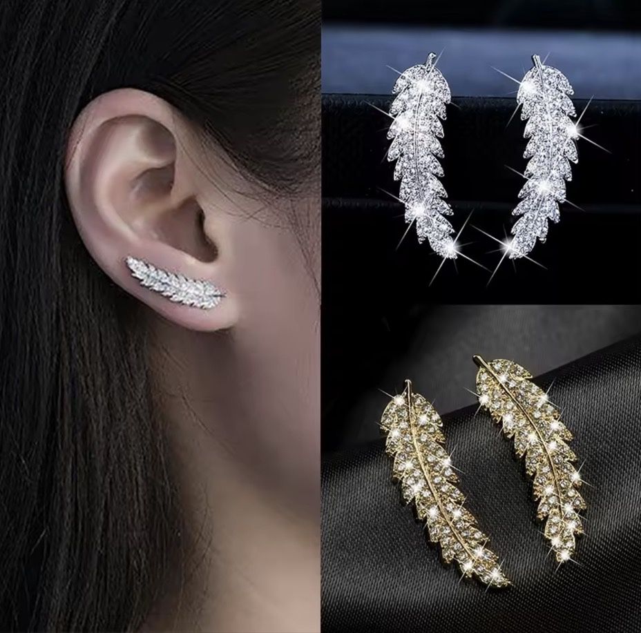 2pc Bundle of Silver & Gold Feather / Leaf Earrings Full of Shiny Crystals E23 ✨ This 2pc bundle of Silver & Gold Feather/Leaf Earrings features a stunning design full of shiny crystals. The earrings are crafted with a threader closure for easy wearing and a stud style for a sophisticated look. Made of silver plated metal and adorned with white cubic zirconia stones, these earrings are perfect for special occasions like engagements, weddings, anniversaries, birthdays, or Everyday Wear. The delicate feather and leaf shapes add a touch of elegance to any outfit, making them a versatile and stylish accessory. ✨Condition: Brand New ✨Get a High End Designer Look at a Great Price! ✨ Offers Are Absolutely Welcomed! ✨ Feel free to message me with any questions. ✨Happy Shopping! ✨Tags: Womens, Earrings, Small, sparkling Crystals Resembling Brilliance of Diamonds, Boho, design, Statement, Bling, Gift, Outfit , Party, Fun, Festive Dainty Office Everyday Wear, Classic Timeless Look, Banquets And Parties