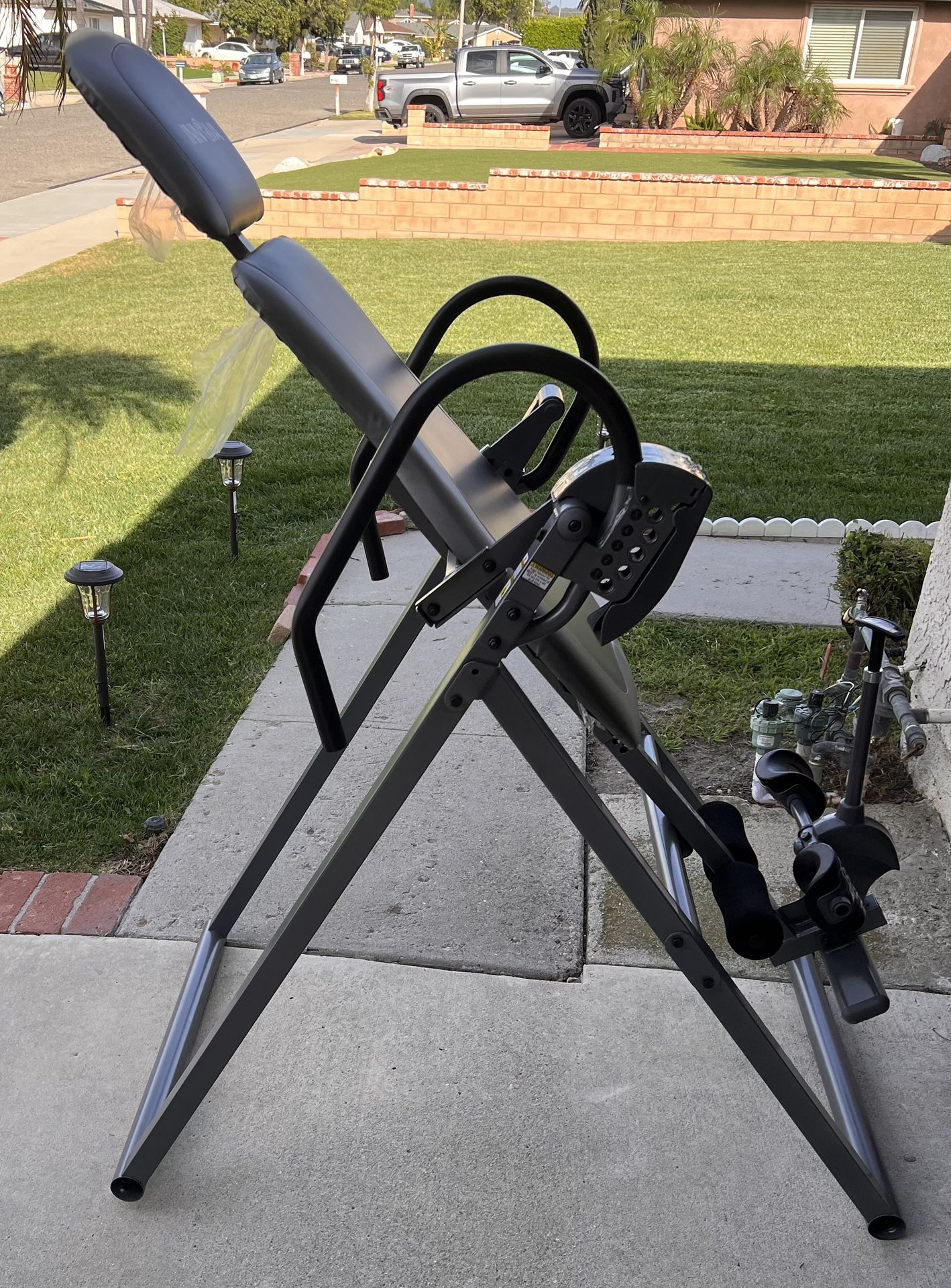 Advanced Inversion Table with Adjustable & Removable Lumbar Pad, Comfortable Ankle Security Cups, Multiple Inversion Angles, Heavy-Duty Frame, 300 lb Capacity, Gray High-quality inversion table for back pain relief and stretching. ✔ Adjustable height & angles ✔ Comfortable padded backrest ✔ Strong & stable frame ✔ Easy to use and store Condition: Very good, works perfectly