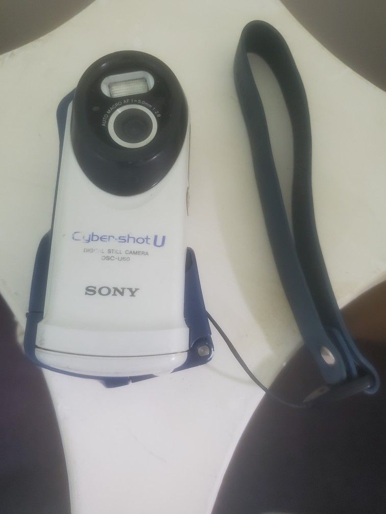 Sony Cyber-shot you, digital still camera, dsc-u60. Look at all the pictures it will tell you all the directions and what this small camera offers. Two triple A batteries. Does not have charger or case. Still works great. Sales on eBay different prices.
